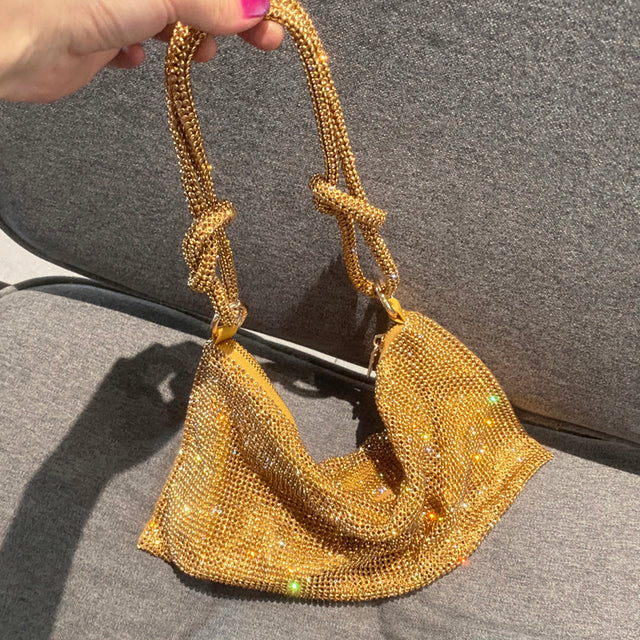 Nothing says luxury quite like a handmade clutch bag adorned with rhinestones. This stunning piece is perfect for any special occasion, whether it's a wedding, gala, or night out on the town. The silver shiny crystal adds a touch of elegance, while the diamonds give it just the right amount of sparkle. The bag comes with a detachable shoulder strap, so you can carry it as a clutch or wear it as a crossbody bag. Whether you're looking for the perfect gift or treating yourself to a little luxury, this Affluent Rhinestones Clutch Bag is sure to please.